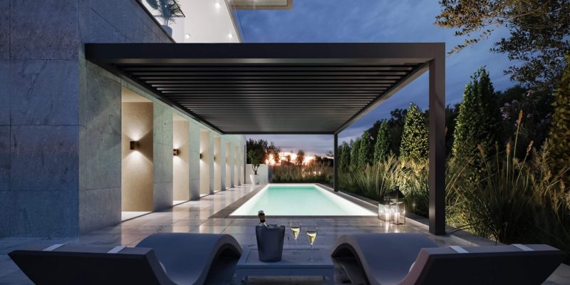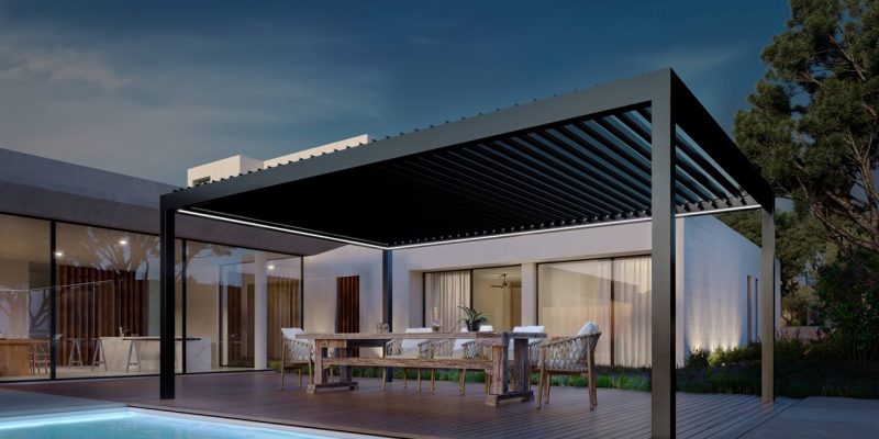 Il sistema di illuminazione a led Eye- Ray – Edge, con il suo aspetto elegante e alla moda completa la fruibilità della bioclimatica,