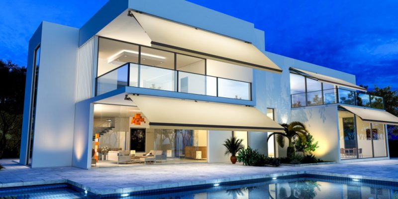 Tenda in barra quadra, bracci categoria Concept con catena Inox multimaglia carterizzata.