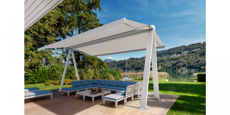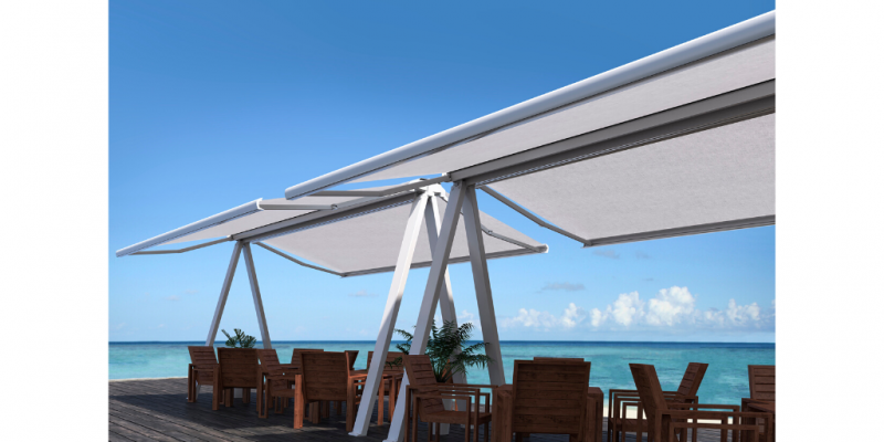 Uve caratterizzata dalla struttura in alluminio dal design minimale di altissima stabilità grazie ai suoi profilati in alluminio maggiorati, dimensione 80×200 mm., con la possibilità di essere fissata a pavimento oppure su ruote gommate ad alta resistenza. Utile per la copertura di spazi medio grandi fino a 36 mq. come terrazzi, piazze o giardini. Questo sistema è predisposto per supportare le tende modello ARES e CONCEPT BOX. Possibilità di illuminare le colonne portanti e la trave superiore con illuminazione Led.