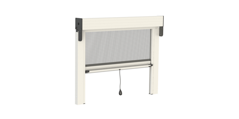 Zanzariera verticale a rete avvolgibile a molla con bottoncino