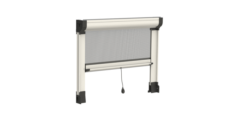 Rete in fibra di vetro di serie, viene fornita saldata e rivettata ai bordi. Al posto della rete si può richiedere l’inserimento di teli oscuranti, filtranti e a strisce. I teli oscuranti e filtranti sono per uso interno e vengono forniti senza bottoncini, da richiedere in fase d’ordine come opzione.
